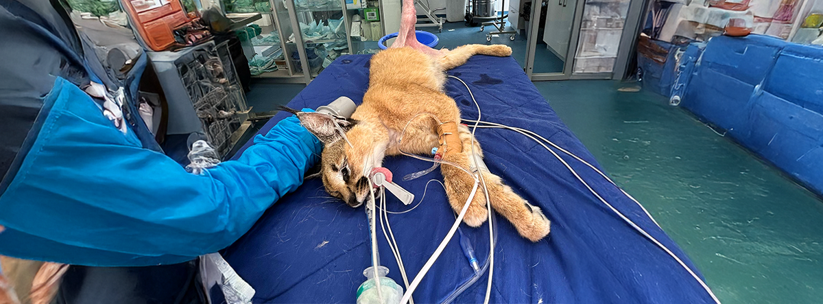 Since the operation, the caracal has been recovering well, with stable post-op results and steady healing progress. Although a full recovery will take time, the outlook is very encouraging, and the wild cat is expected to gradually regain strength and mobility.