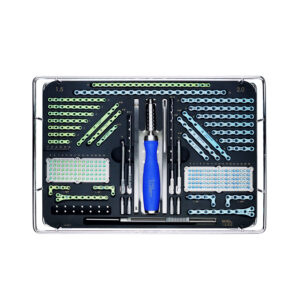 The LeiLOX 1.5/2.0 Micro System is the “swiss army knife” for micro fractures: it contains not only (cuttable) standard plates, but also unique shapes for complex anatomy. Available in four different compact sets: LeiLOX 1.5/2.0 Osteosynthesis Locking Set ,and 1.5/2.0 Challenger Set, 1.5 Osteosynthesis Locking Set, and the 2.0 Osteosynthesis Locking Set.