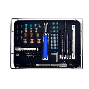 Tiny TTA RAPID® is designed for tiny animals, especially cats, toy breed dogs, and dogs with short legs, that need a wide advancement. The Tiny TTA RAPID® set makes it possible to treat small dogs and cats with custom 1.5 / 2.0 mm cages and screws. The instrumentation set also features a "tiny" sawguide for short osteotomies and a "tiny" spreader".